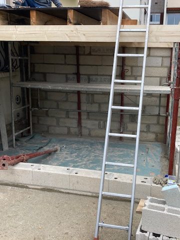 Terrasse extérieure – réalisation d’une terrasse en hauteur avec escalier béton (montage des murs, coulage dalle…)